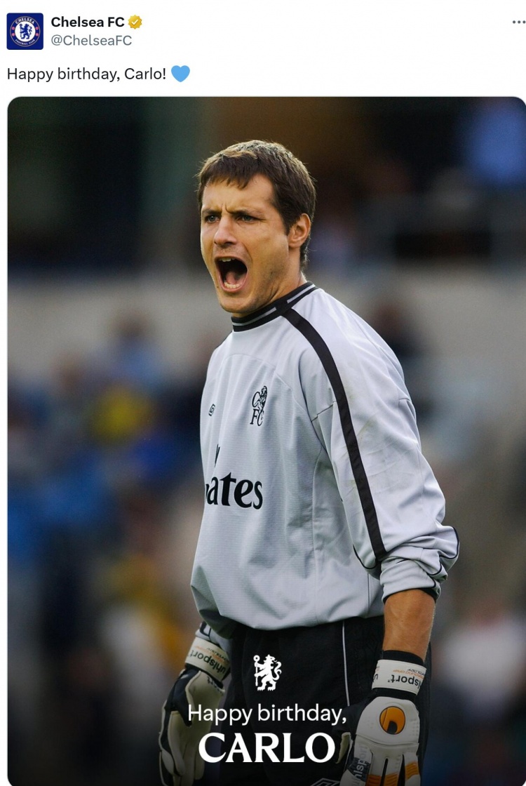 9月6日,切尔西官方推特更新动态,为俱乐部传奇门将卡尔洛-库迪奇尼送上生日祝福。