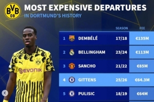 体育资讯7月6日讯 切尔西已经官宣签下多特边锋吉滕斯,《转会市场》统计显示后者也是多特队史出售的第4贵球员。