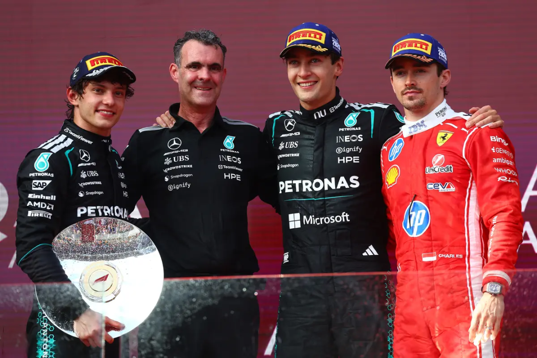 紧接着的正赛中,拉塞尔一路稳健领先,最终摘得本站冠军,新秀安东内利也惊艳地收获亚军席位,而法拉利车队的勒克莱尔则最终拿下季军。