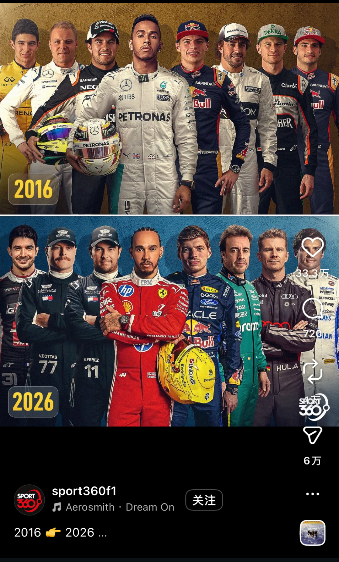 2010 年以后,随着社交媒体的兴起,F1 的传播方式也发生变化,短视频、高频实时互动、围场花絮等内容开始在年轻受众中获得流量,使得这项曾被视为“贵族运动”的赛车赛事越来越贴近普通观众。