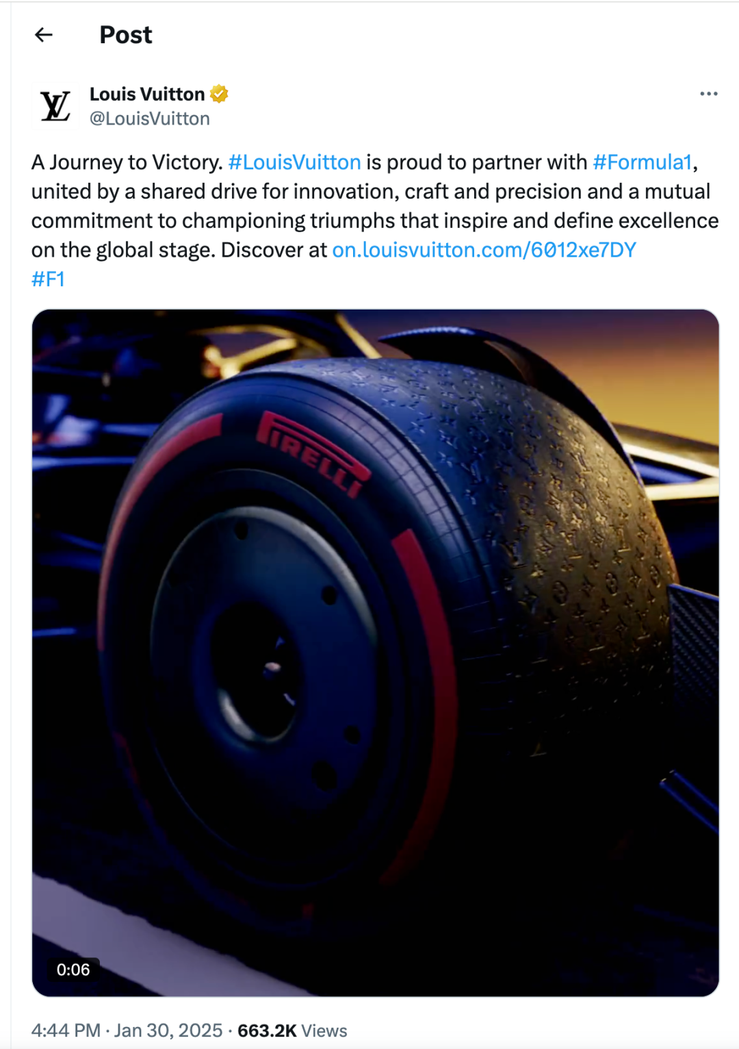与此同时,F1 的全球商业赞助也在不断升级。2024 年,奢侈品集团 LVMH 与 F1 签署长期合作协议,总合同规模大约十亿美元,这在体育与奢侈品融合中属于标志性事件。